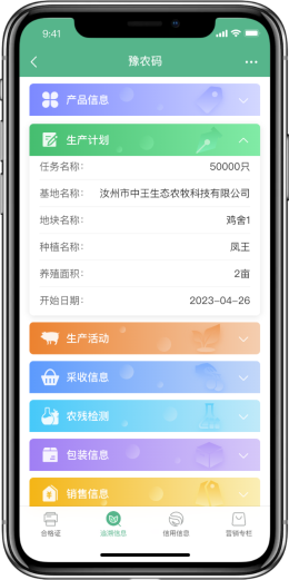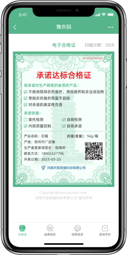 天歌農產品質量安全追溯信息平臺(https://zs.aiccsm.com)是由我司自主研發,以”提升政府智慧監管能力,規范主體生產經營行為,增強社會公眾消費信心”為宗旨,為各級農產品質量安全監管機構、檢測機構、執法機構以及廣大農產品生產經營者、社會公眾提供信息化服務。 服務政府:為政療監管提供信息化管理手段,通過對追溯、監管、監測、執法基礎數據的集中管理,實現政府監管的移動化、智能化、可視化,提升政府科學決策、風險預警和應急指揮能力。 服務企業:為企業搭建統一的內外追溯平臺,規范企業生產經營活動,實現農產品”來源可追溯、流向可追蹤、風險可預警、產品可召回、責任可追究。 服務公眾:為公眾提供追溯統一查詢入口,快捷和實時查詢農產品的追溯信息。